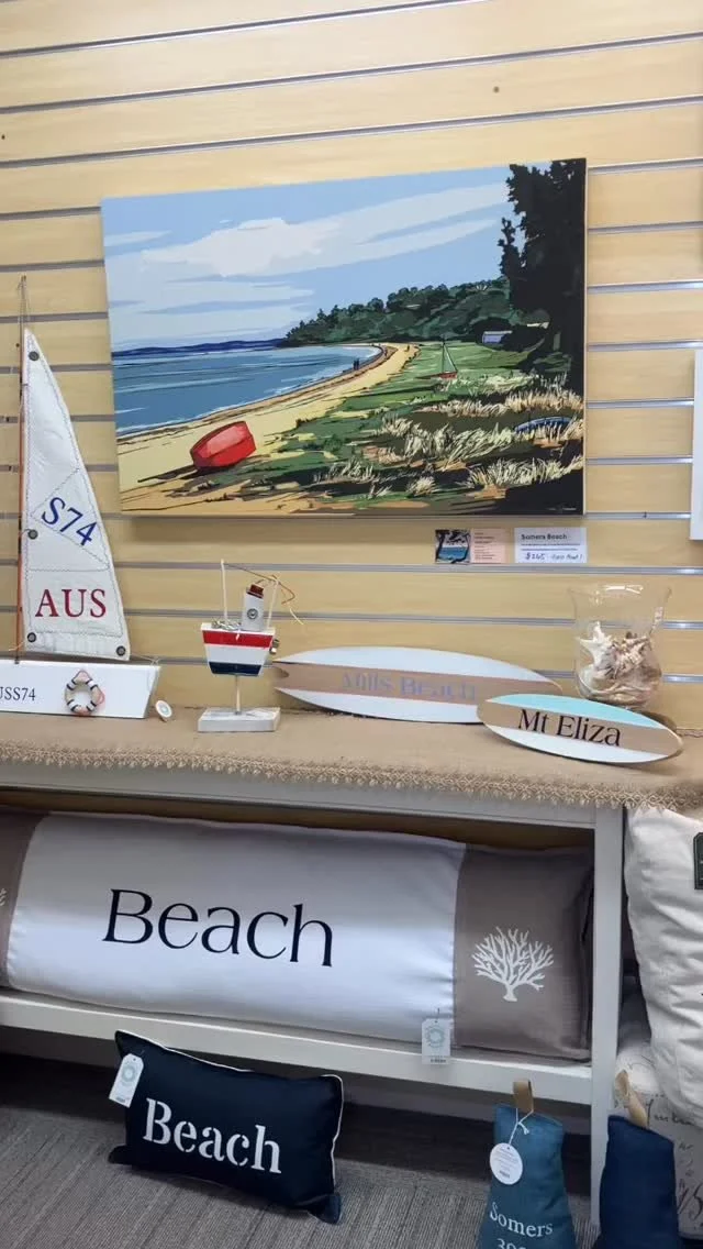 Colourmeadow prints are created by Mornington Peninsula Artist Jill McFarlane from her hand drawn artwork of local iconic peninsula landscapes. Printed in Melbourne on fabric and wood they combine organic textures , coastal style and mid century bold line. Jill’s work draws inspiration from vintage poster art and Japanese line art.